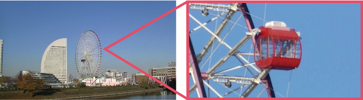 Die Everio Modelle der E/EX-Serie enthalten ein optisches Zoomobjektiv mit bis zu 40-facher Vergrößerung. Mit diesem Tele-Wert liegen diese Camcorder in der Consumer-Klasse an der Spitze. Beim Heranholen weiter entfernter Motive bleibt die hohe Bildqualität ohne Beeinträchtigungen erhalten. (Die Camcorder der VX/GX-Serie verfügen über ein 10-fach optisches Zoom.)